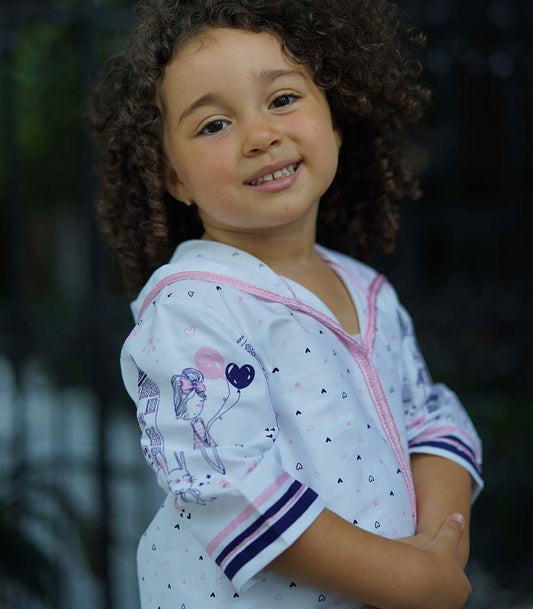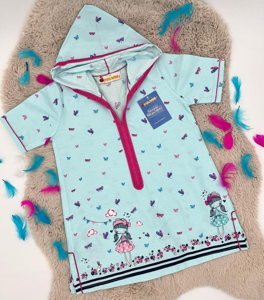 Djellaba fillette Princesse Bleue - Élégance et Confort (motifs papillons et cœur) | Ô p'tit beldi