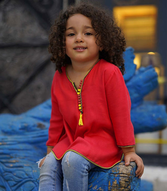 Tunique fillette ocre rouge | Ô p'tit beldi