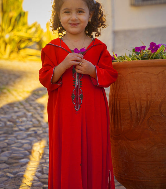 Jellaba fillette Enchantée Rouge Passion | Ô p'tit beldi