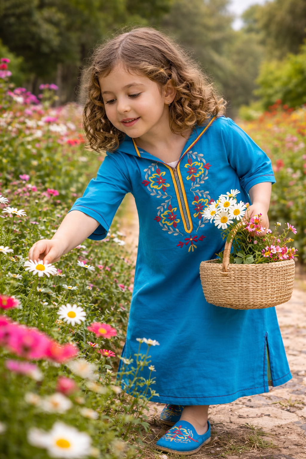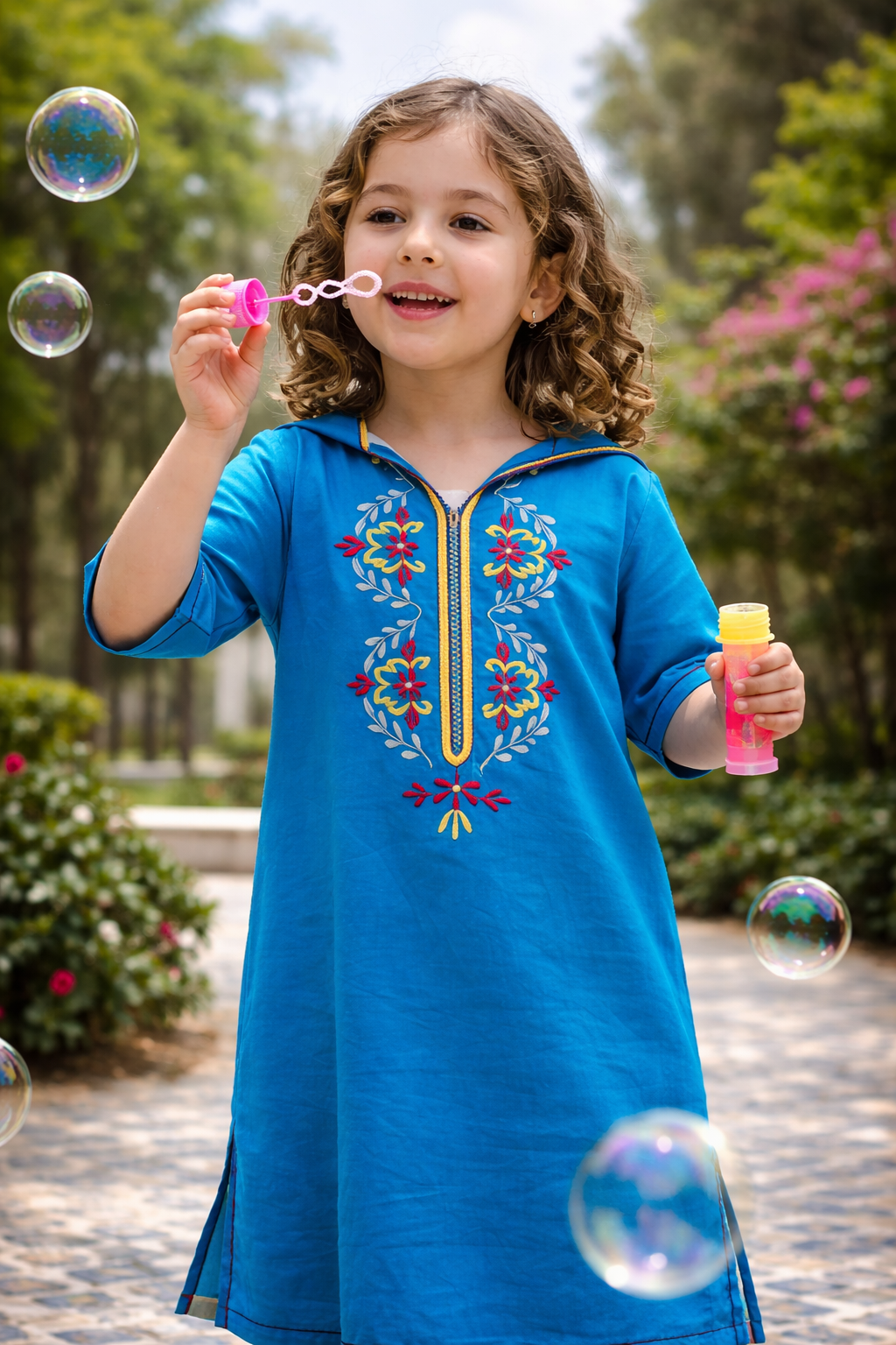 Djellaba fillette Éclat Bleu Électrique Brodée | Ô p'tit beldi
