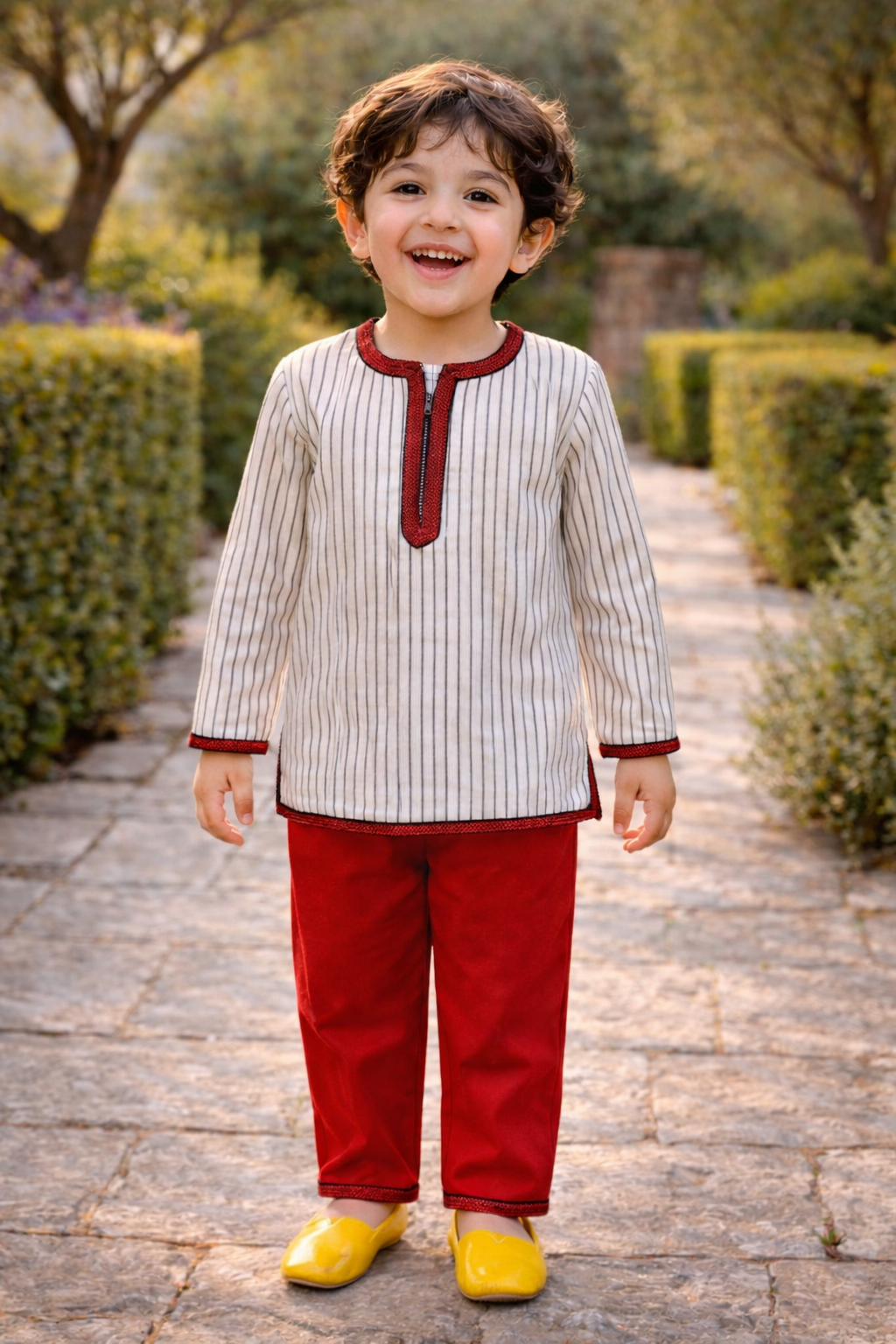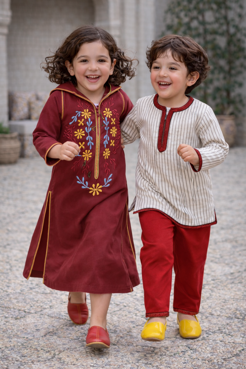 Plongez dans l’élégance intemporelle avec le Jabador Atlas, une tenue inspirée du raffinement marocain et conçue pour les petits explorateurs du quotidien.