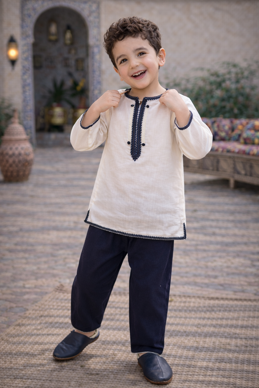 • Tissu léger et confortable 🌿 : Parfait pour les saisons chaudes, ce jabador en tissu léger offre à votre enfant la liberté de mouvement tout en restant élégant.