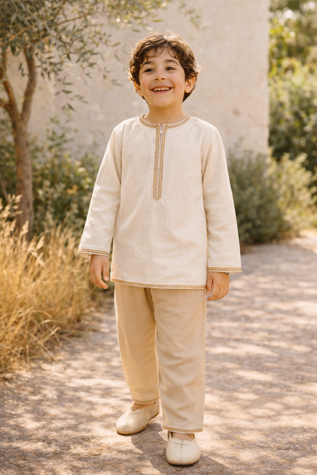 L’ensemble Soleil d’Atlas incarne la douceur des journées lumineuses et le charme intemporel des tenues traditionnelles revisitées avec modernité.